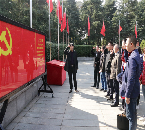 公司黨總支全體黨員胸前佩戴黨徽,于11月29日上午11時(shí)到達(dá)韶山。青山肅穆、白云俯首,在毛主席銅像廣場(chǎng),首先由黨總支書(shū)記李方愛(ài)同志帶領(lǐng)全體黨員敬獻(xiàn)了花籃,全體黨員鞠躬致敬,繞銅像一周,深切緬懷毛澤東同志。隨后,全體黨員在黨旗下重溫入黨誓詞,參觀毛澤東同志故居。